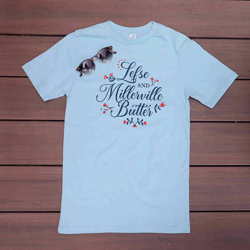 Celebrate your Nordic roots with our Lefse & Millerville tee. With a nod to Scandinavian heritage, this shirt is perfect for butter lovers, lutefisk dodgers, and lefse rollers alike.