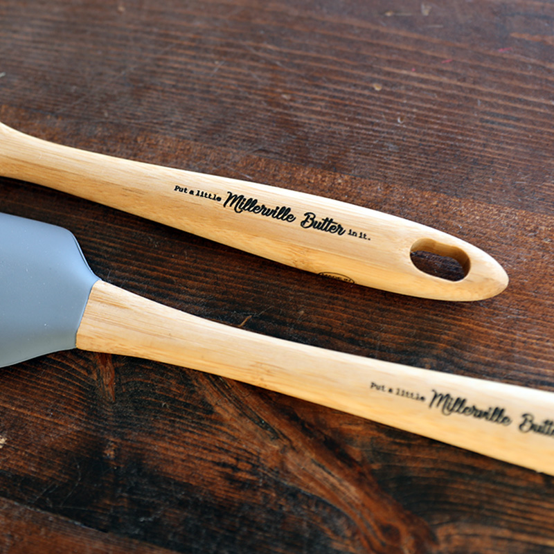 Because everything tastes better with a little Millerville Butter! These wooden utensils feature a laser-engraved “Put a little Millerville Butter in it” message that adds instant joy to your kitchen.