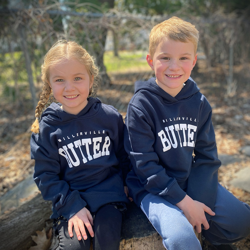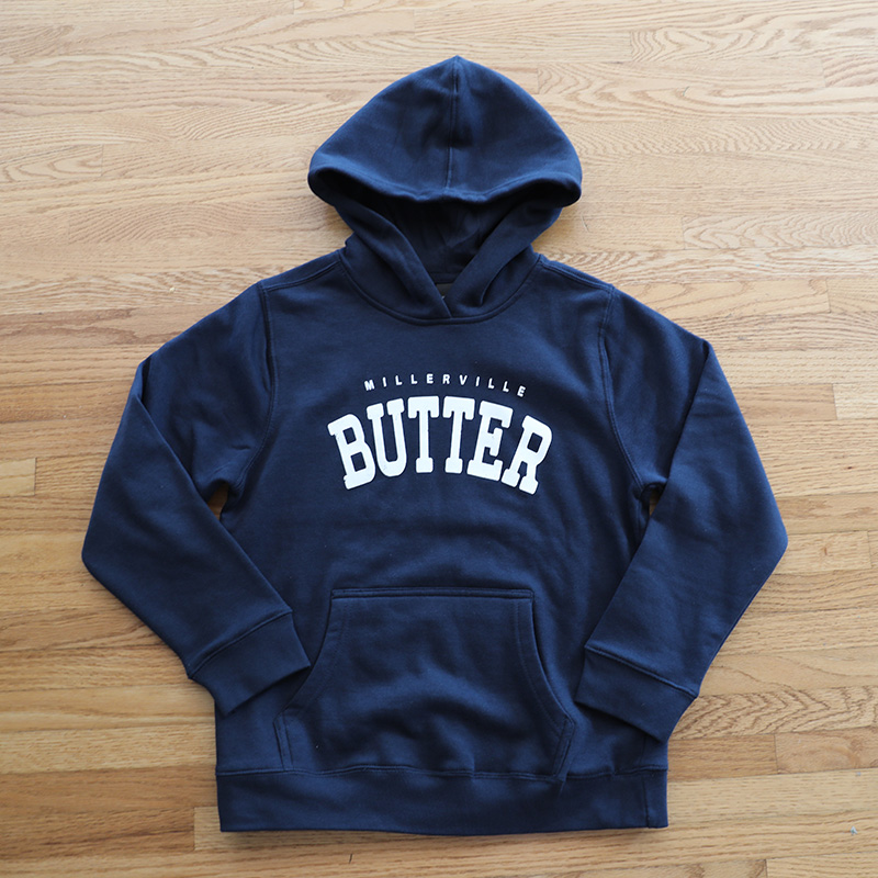 Our cozy Millerville Butter youth hoodie features playful puff print making it extra special for kids.